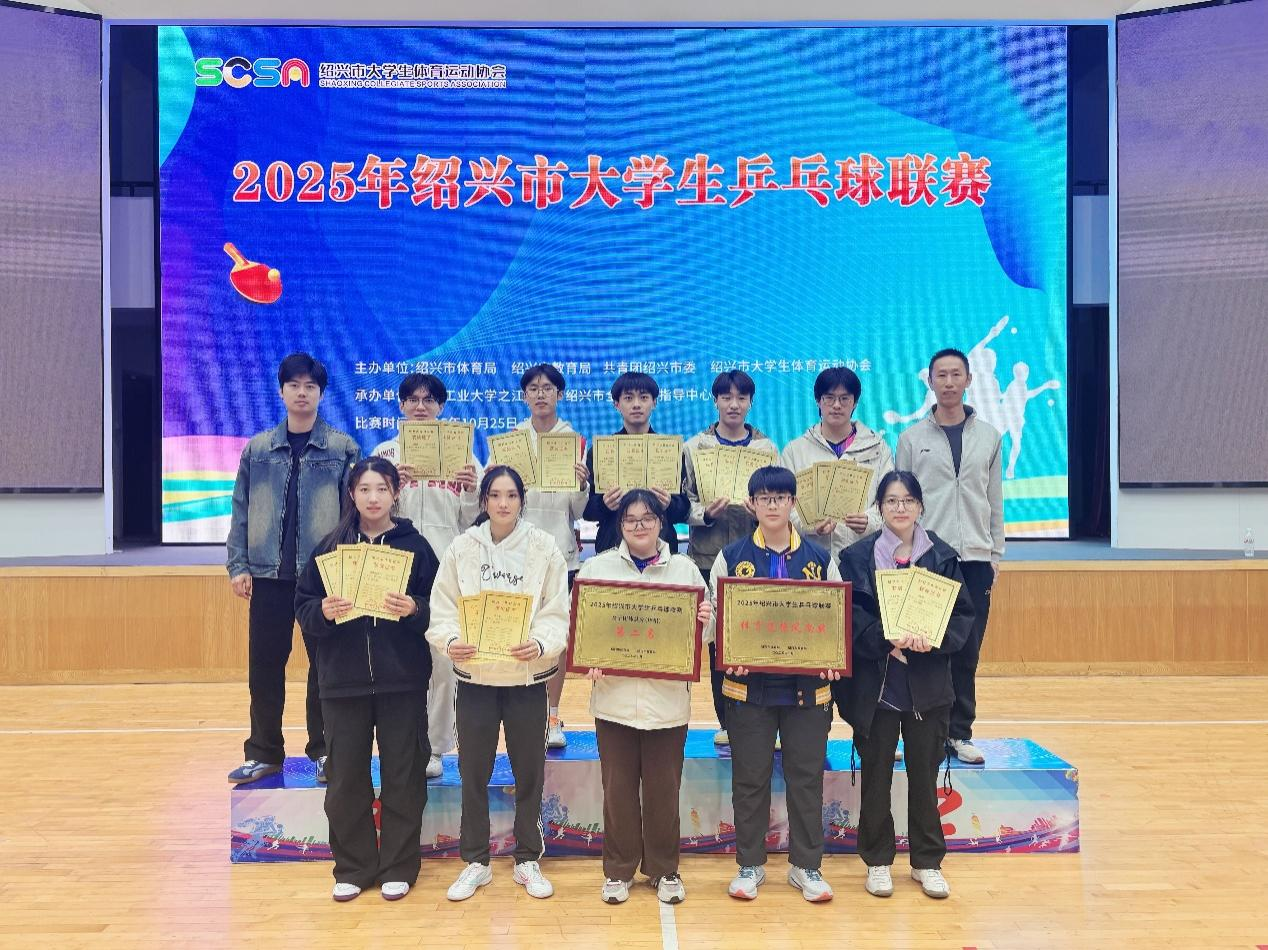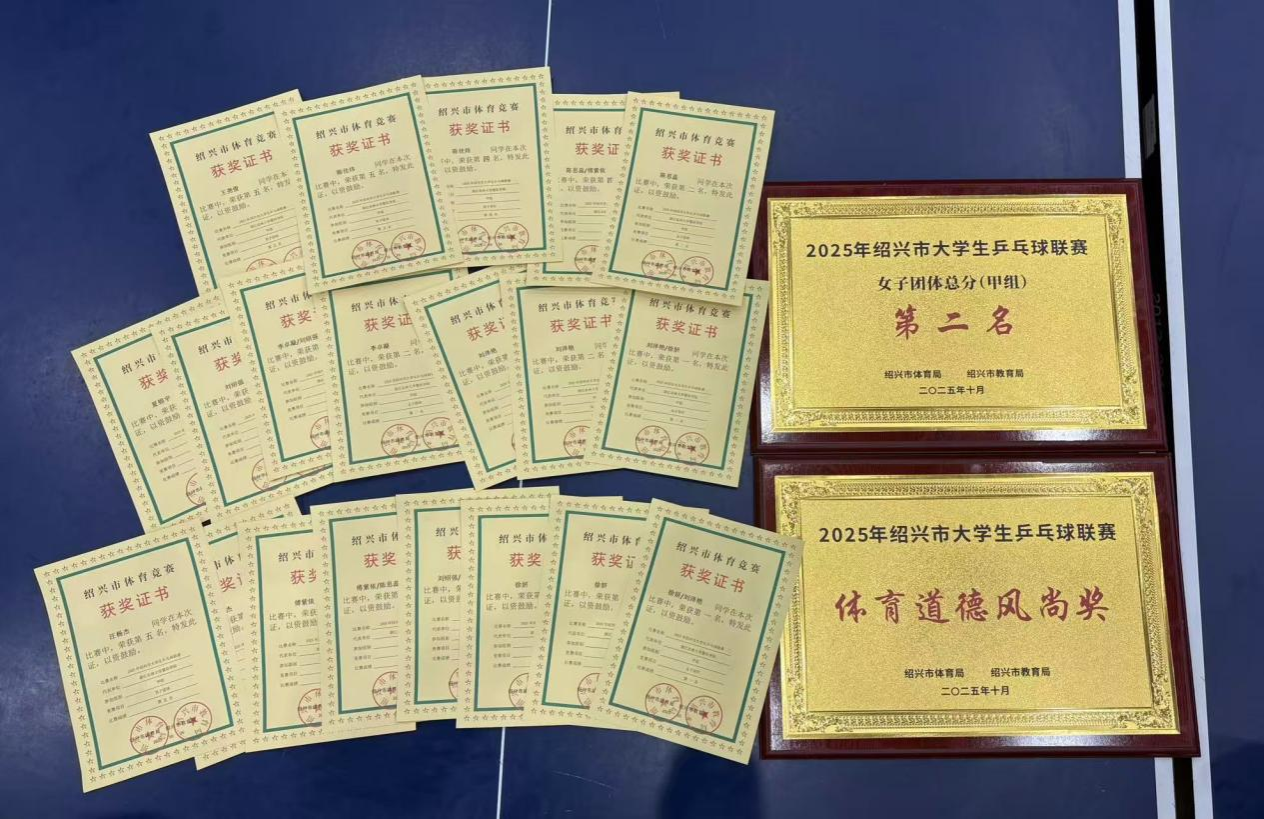 2025年10月25日至26日,绍兴市大学生乒乓球联赛在浙江工业大学之江学院举办,在寿晨仰、郑杰政两位教练的指导下,我院的乒乓健儿们凭借精湛球技与顽强斗志斩获佳绩。